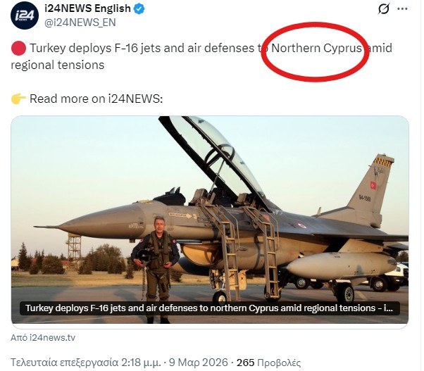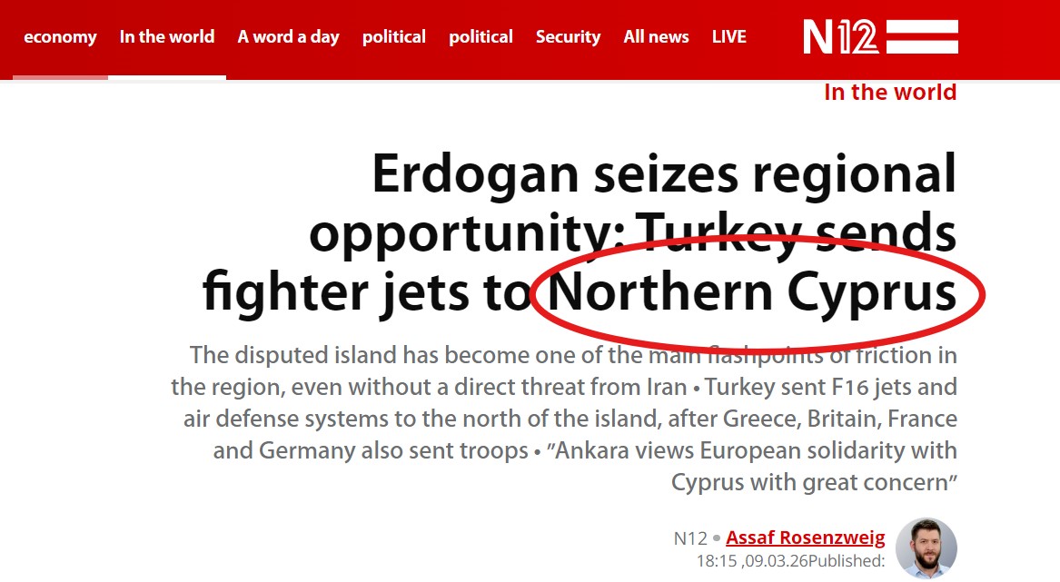 Προβληματισμό προκαλεί το γεγονός πως ορισμένοι μεμονωμένοι Ισραηλινοί δημοσιογράφοι και μέσα ενημέρωσης, καθώς και ένα πολωνικό μέσο, αναφέρθηκαν σε αναρτήσεις τους στον όρο «Northern Cyprus» (Βόρεια Κύπρος) με αφορμή την άφιξη τουρκικών F-16 στα κατεχόμενα.